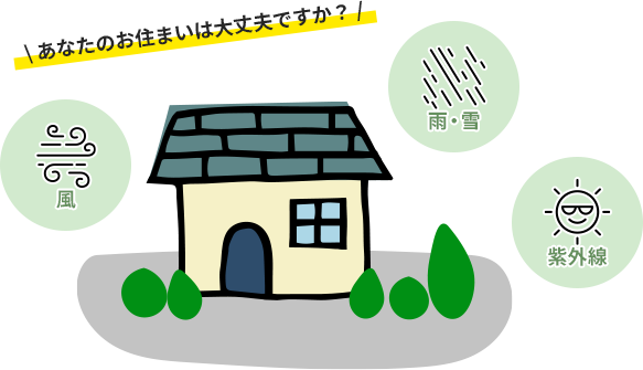 今お住まいの屋根と外壁は、毎日雨風などの外的ダメージにさらされています。 そして劣化状態を放置すると、耐久性の低下や雨漏りなどにつながってしまいます。